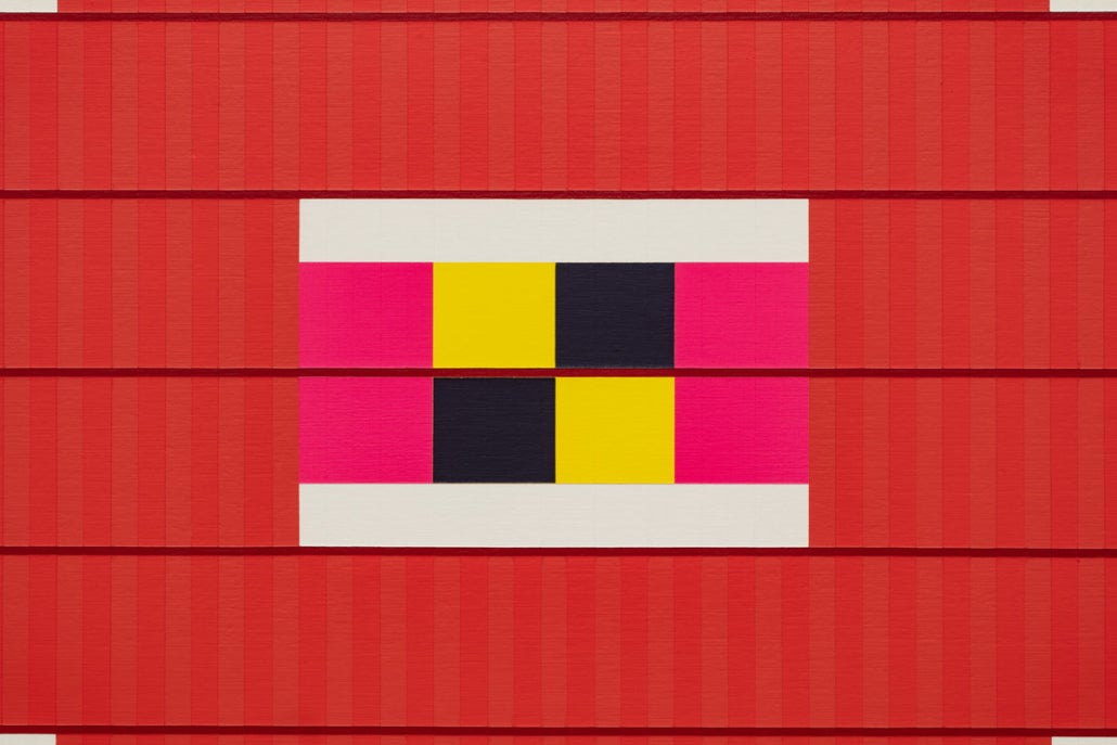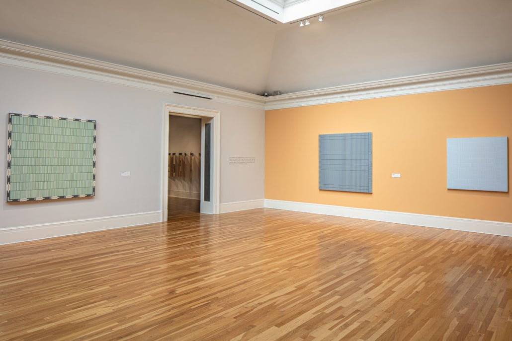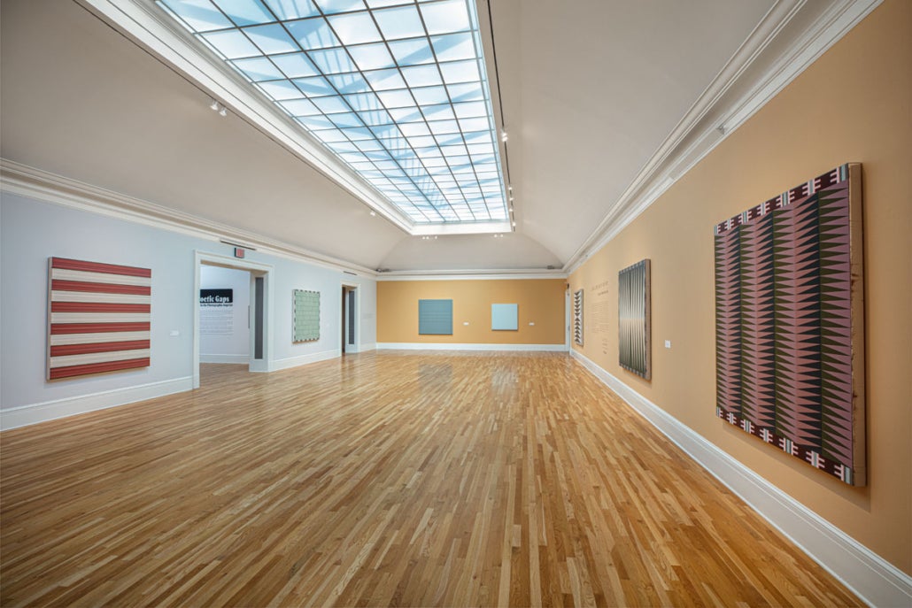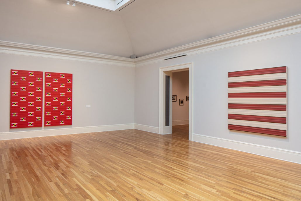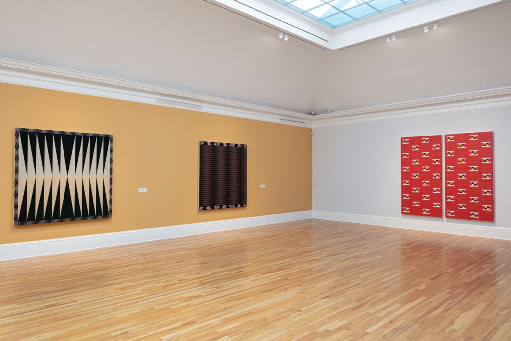 it takes a long time to stay here is artist Jordan Ann Craig’s (Northern Cheyenne) largest institutional exhibition to date. Her large-scale abstract paintings reflect her engagement with Indigenous, especially NorthernCheyenne, aesthetic traditions and her dynamic and innovative exploration of color, line, and geometric form. Craig’s practice often begins with research in museum collections and archives—studying, learning from, and engaging in a dialogue with traditional Indigenous artistic forms, such as beadwork, pottery, and textiles. She also draws inspiration from the landscape of what is now the Southwestern United States, where she lives and works.