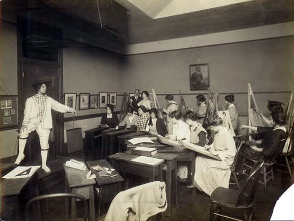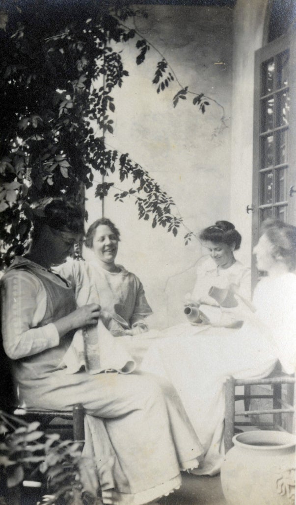 Newcomb decorators and potter Joseph Meyer in the Washington Avenue campus ceramics studio, c. 1905–06. Newcomb Archives – Photo Archives Collection