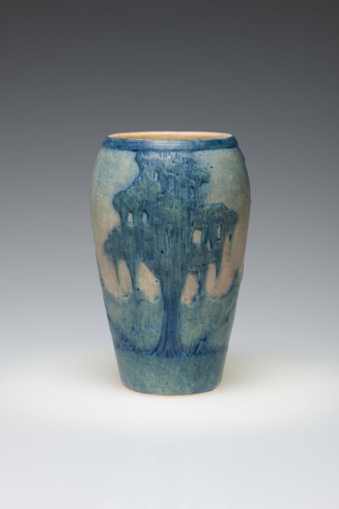 Founded in 1895 at the H. Sophie Newcomb Memorial College in New Orleans—a women’s higher education institution affiliated with Tulane University—Newcomb Pottery emerged as a commercial enterprise designed to put women’s artistic training into professional practice. While male potters shaped the ceramic forms using clays sourced throughout the South, women designers were responsible for surface decoration, drawing inspiration from the region’s plants and wildlife. The pottery quickly gained international recognition for its craftsmanship and its perceived authenticity in representing Southern identity. These strong ties to place endure today, long after the pottery’s closure in 1939.